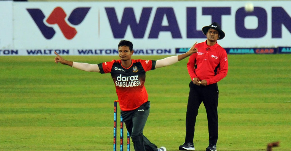 এদিন ইনিংসের অষ্টম ওভারে নিজের প্রথম ওভার বল করতে আসেন সাকিব আল হাসান। এসেই বাজিমাত এই বাঁহাতি স্পিনারের। নিজের দ্বিতীয় বলে বোল্ড করেন ওয়েডকে। ২২ বল খেলে সমান ২২ রান করে সাজঘরে ফেরেন অজি দলপতি। পরে বল হাতে সফলতা পান মাহমুদউল্লাহ রিয়াদ। ম্যাকডরমটকে নিজের বলে নিজেই ক্যাচ নিয়ে ফেরান তিনি।