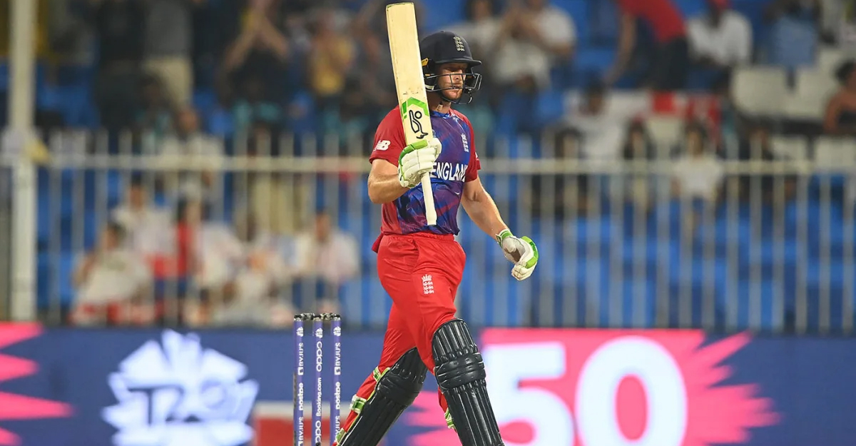 মরগানের আউটের আগেই অবশ্য ব্যাট হাতে ঝড় তোলেন বাটলার। অনবদ্য ব্যাটিংয়ে নিজের টি-টোয়েন্টি ক্যারিয়ারের প্রথম শতক তুলে নেন তিনি। এটি চলতি বিশ্বকাপেও কোন ব্যাটসম্যানের প্রথম সেঞ্চুরি। ১০১ রানে অপরাজিত থাকেন। এতে নির্ধারিত ২০ ওভার শেষে ৪ উইকেট হারিয়ে স্কোর বোর্ডে ১৬৩ রানের পুঁজি পেয়েছে ইংল্যান্ড।