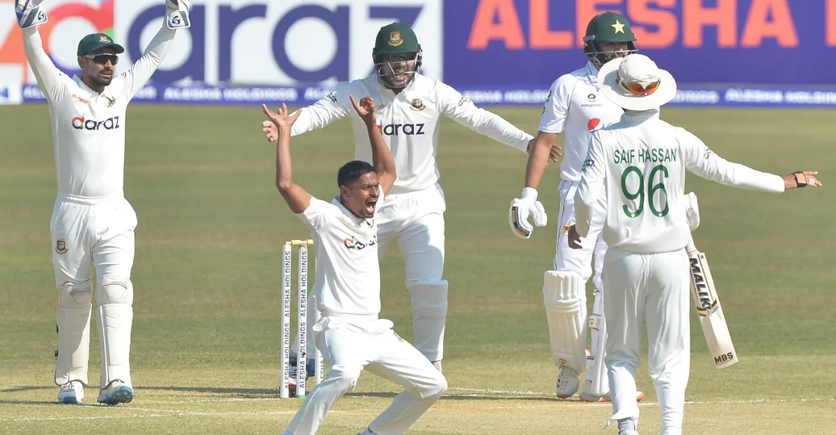 কোন উইকেট না হারিয়ে স্কোর বোর্ড ১৪৫ রান নিয়ে ব্যাট করতে নামে পাকিস্তান। আবিদ ৯৩ ও শফিক ইনিংস শুরু করেন ৫২ রানে। দিনের প্রথম ওভারেই বল হাতে বাজিমাত তাইজুলের। জোড়া আঘাতে স্বাগতিক শিবিরে স্বস্তি ফেরান এই বাঁহাতি। ইনিংসের ৫৮তম ওভারের পঞ্চম বলে শফিককে গুড লেন্থে খেলান তাইজুল। খানিকটা জায়গা বানিয়ে খেলতে চেয়েছিলেন পাকিস্তান ওপেনার। তবে বলটা তার ব্যাটে যাওয়ার আগেই ছুঁয়ে গেছে প্যাড।
