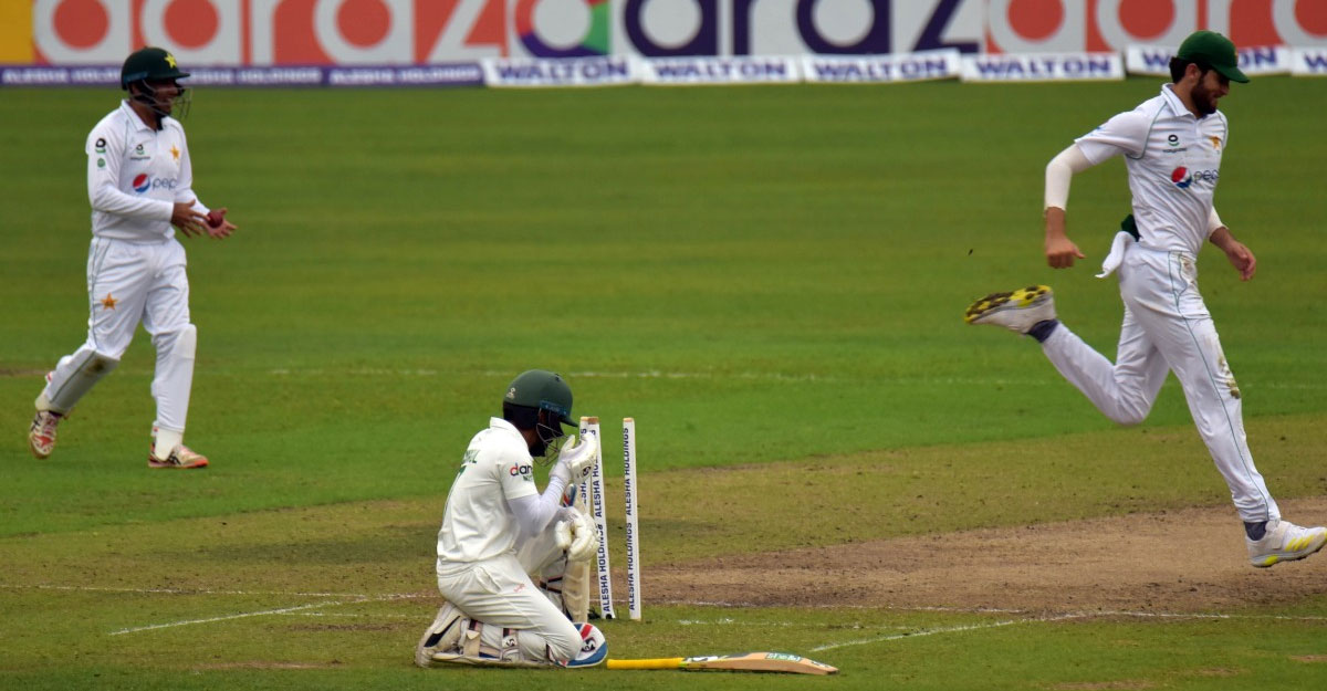 উইকেট যাওয়ার মিছিল শুরু হয়েছে যেন। কেউ কেউ ভালো বলে আউট হলেও মুশফিকের মতো অনেকেই ফিরছেন একরকম বোকামি করে। মিরপুরে পাকিস্তানি বোলারদের সামনে অসহায় আত্মসমর্পণ। একে একে আউট হয়ে গেছেন বাংলাদেশের ছয় ব্যাটসম্যান।