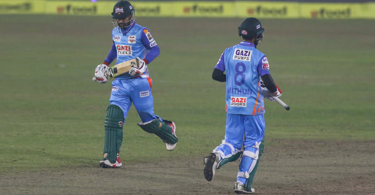 দলের পক্ষে বাকি কাজটা সারেন অধিনায়ক মোহাম্মদ মিঠুন। ৩৫ বলে ৩৪ রান করে তিনি আউট হয়ে গেলেও জয়ের পথে সেটা কোনো বাধা হয়নি। পাঁচ বল হাতে রেখেই লক্ষ্যে পৌঁছে যায় চট্টগ্রাম।