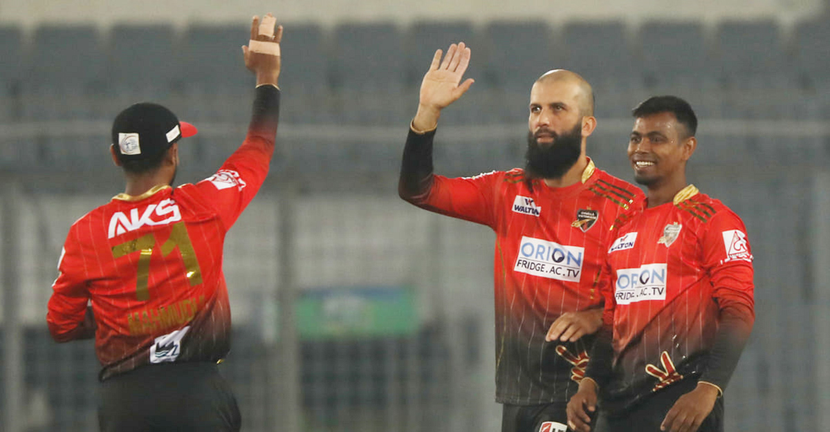দুই ওপেনারের মাঝে আরো একটি বড় উইকেট হারায় চট্টগ্রাম। আগের ম্যাচটি জেতানোর নায়ক চ্যাডউইক ওয়ালটন ফেরেন মাত্র ২ রান করে। এরপর আফিফ হোসেন (১০), শামীম পাটোয়ারীও (০) সুবিধা করতে পারেননি মঈনের সামনে। এতে দলীয় স্কোর পঞ্চাশ ছুঁতেই ৫ উইকেট হারিয়ে বসে চট্টগ্রাম। এতে বড় সংগ্রহের স্বপ্ন ফিকে হয়ে যায়।