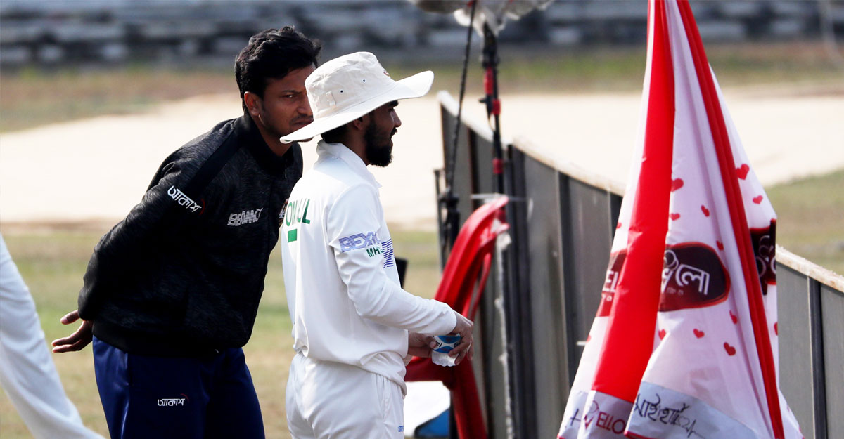 তবে টেস্ট সিরিজের শুরুতেই বাধে বিপত্তি। প্রথম ইনিংসে ব্যাট হাতে ৬৮ রানের ইনিংস খেলা সাকিব পরে ফিল্ডিং করতে গিয়ে চোট পান। ঊরুতে পাওয়া সেই চোটে আর মাঠেই ফিরতে পারেননি তিনি। মূলত সাকিবকে নিয়েই বোলিং বিভাগের পরিকল্পনা সাজিয়েছিল টাইগাররা। তার না থাকায় এই বিভাগে বড় ধরনের শূন্যতা তৈরি হয়। অনেকেই মনে করছেন, সাকিব থাকলে ভিন্ন হতে পারতো চট্টগ্রাম টেস্টের ফল।