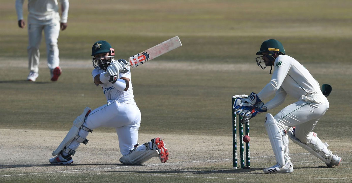 আগের দিনের খেলা শেষে পাকিস্তানের একমাত্র আশা ছিলেন মোহাম্মদ রিজওয়ান। কী দারুণভাবেই না সেটা পূরণ করলেন তিনি! লোয়ার অর্ডার ব্যাটসম্যানদের নিয়ে লড়াই করে করলেন সেঞ্চুুরি। দক্ষিণ আফ্রিকার সামনে দিলেন বড় লক্ষ্য।