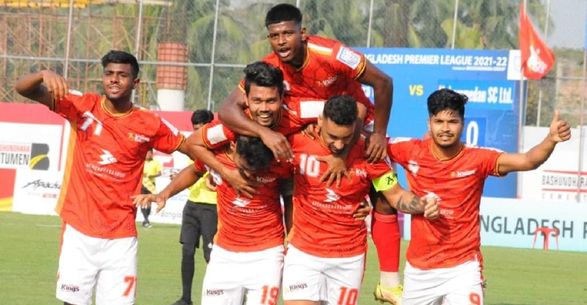 ১১ মিনিটে গোছালো আক্রমণে লিড নেয় কিংস। আক্রমণের শুরু গোলরক্ষক আনিসুর রহমান জিকোর পাস থেকে। তারিক কাজী থেকে, বিপলু আহমেদ এরপর মোহাম্মদ ইব্রাহিমের কাট ব্যাকে বক্সের ভেতর থেকে মাহাদি ইউসুফের ব্যাক হিলে বল যায় সুমন রেজা পায়ে। তিনি দুর্দান্ত প্লেসিং শটে গোল করেন।