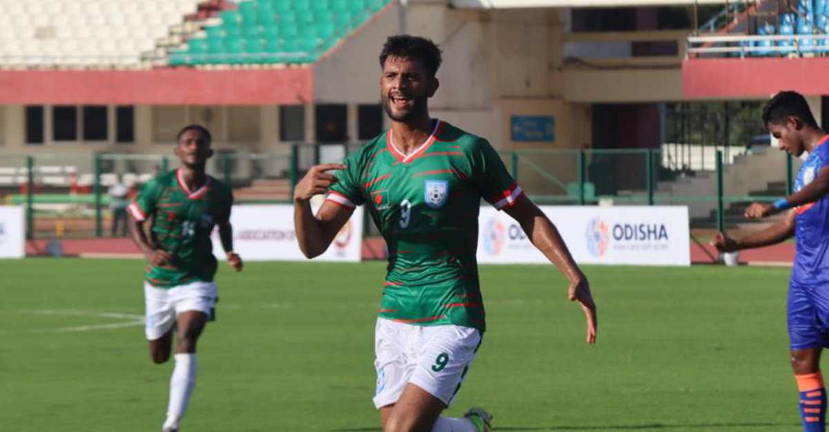 সাফ অ-২০ ফুটবল চ্যাম্পিয়নশিপে বাংলাদেশ যুব দলের জয়ের ধারা অব্যাহত রয়েছে। শ্রীলঙ্কার পর আজ নিজেদের দ্বিতীয় ম্যাচে ভারতকে হারিয়েছে বাংলাদেশ। ভুবেনশ্বরের কালিঙ্গ স্টেডিয়ামে বাংলাদেশ ২-১ গোলে স্বাগতিক দলকে হারায়। এই জয়ে বাংলাদেশ দুই ম্যাচ শেষে ৬ পয়েন্ট নিয়ে টেবিলের শীর্ষস্থান দখল করল।