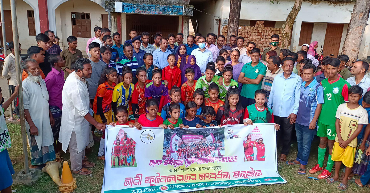 সাফজয়ী ময়মনসিংহের কলসিন্দুর গ্রামের আট নারী ফুটবালারের পরিবারকে পুরস্কার হিসেবে প্রত্যেককে ৫০ হাজার টাকা করে মোট ৪ লাখ টাকা দিয়েছে জেলা প্রশাসন।