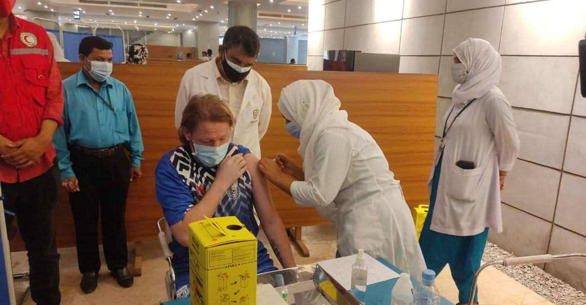 টিকা দেওয়ার পর জেমি জানান, এখন পর্যন্ত সুস্থ ও স্বাভাবিক রয়েছি। সাধারণ টিকার মতোই লাগছে। টিকা দিন প্রক্রিয়াটা বেশ সহজ ছিল। জেমিদের এই টিকাদানের সময় উপস্থিত ছিলেন বাফুফের মেডিকেল কমিটির ডেপুটি চেয়ারম্যান আলী ইমরান।