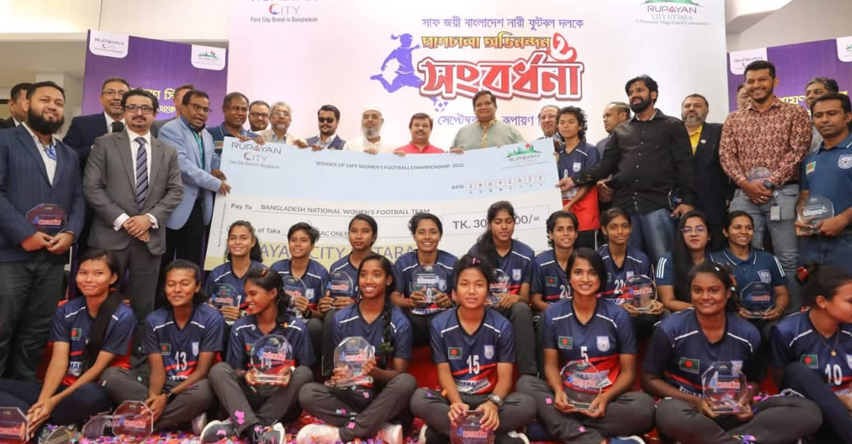 রূপায়ণ সিটি উত্তরার পক্ষ থেকে নারী খেলোয়াদের জন্য বাংলাদেশ ফুটবল ফেডারেশনের কাছে ৩০ লাখ টাকার চেক তুলে দেওয়া হয়। সংবর্ধনা অনুষ্ঠানে অভিজ্ঞতার কথা বলেন বাংলাদেশ নারী ফুটবল দলের সহ-অধিনায়ক মারিয়া মান্ডা এবং কোচ গোলাম রব্বানী ছোটন।