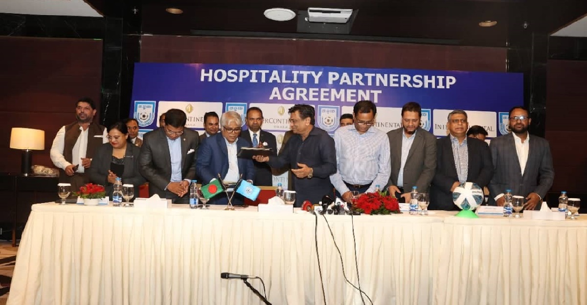 আজ বাংলাদেশ ফুটবল ফেডারেশন ও হোটেল ইন্টারকন্টিনেন্টালের সঙ্গে দ্বিপাক্ষিক চুক্তি হয়। চুক্তিতে আসন্ন এএফসি অনুর্ধ্ব-১৭ চ্যাম্পিয়নশিপের বাছাইয়ে বাফুফের হসপিটালিটি পার্টনার হয়েছে হোটেল ইন্টারকন্টিনেন্টাল। আপাতত এএফসি অ-১৭ নিয়ে চুক্তি হলেও বাফুফের সঙ্গে চার বছর পথ চলার পরিকল্পনা দেশের এই শীর্ষ হোটেলটির,' আমরা আসলে দীর্ঘদিন ফুটবলের সঙ্গে থাকতে চাই। নীতিগতভাবে চার বছর বাফুফের সঙ্গে থাকার সিদ্ধান্ত নেওয়া হয়েছে,' বলেন ইন্টারকন্টিনেন্টালের এমডি আতিকুর রহমান।