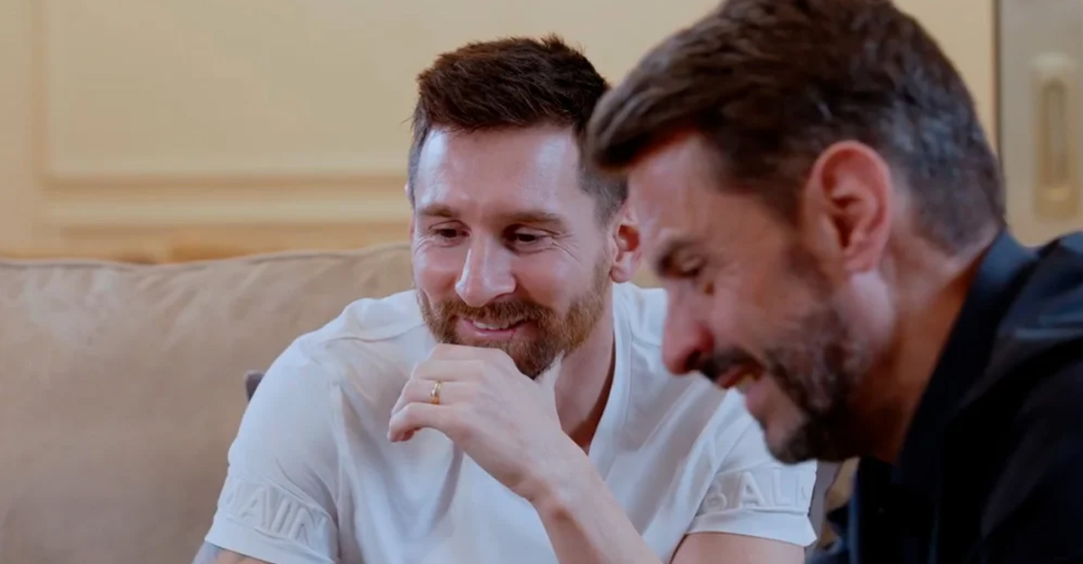 সাক্ষাৎকারের শুরুতে দেখা যায়, জিরাল্ট মেসির বাড়িতে গিয়ে উঠছেন, আর্জেন্টাইন তারকা নিজে দরজা খুলে দিয়েছেন তাকে। শুরুর আগেই তিনি জানিয়ে দেন, সাক্ষাৎকার নিতে নয়, মেসির সাক্ষাতের জন্যেই গিয়েছেন সেখানে।