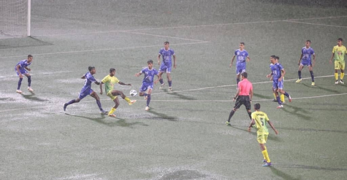 সকাল থেকেই চলছে অনবরত বৃষ্টি। সময়ের সঙ্গে অনেক ধারও বেড়েছে বৃষ্টির। এরই মধ্যে কমলাপুর স্টেডিয়ামে অনুষ্ঠিত হয়েছে বাফুফে অনুর্ধ্ব-১৮ ফুটবল লিগের ম্যাচ।