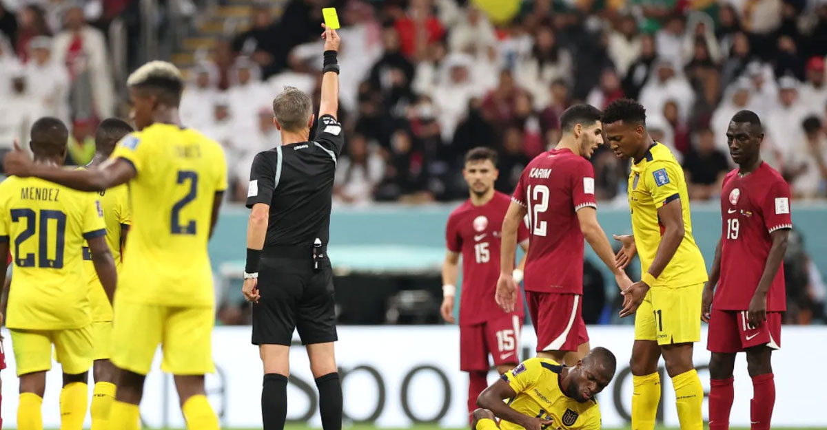 এরপর দ্বিতীয়ার্ধের ৫৬ মিনিটে ইকুয়েডরের খেলোয়াড় মেন্ডেজ ফাউল করে বসলে হলুদ কার্ড দেখাতে বাধ্য হন রেফারি। এরপর ৭৮ মিনিটে কাতারের আকরাম আফিফ হলুদ কার্ড দেখলে ৬টি কার্ডের রেকর্ড হয় এই ম্যাচে। আর তাতেই ১৯৯৪ সালের উদ্বোধনী ম্যাচের পর সর্বোচ্চ কার্ডের ম্যাচে পরিণত হয় এবারের আসরের উদ্বোধনী ম্যাচ। এর আগে ১৯৯৪ তে জার্মানি আর বলিভিয়ার ম্যাচে ৬ হলুদ কার্ডের পাশাপাশি একটি লাল কার্ডও দেখাতে হয়েছিলো রেফারিকে।