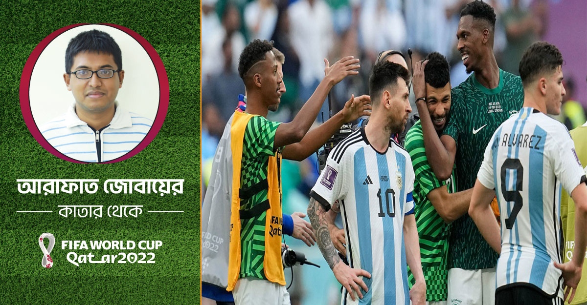 বিশ্বকাপ ফুটবল ইতিহাসের অন্যতম বড় অঘটন আর্জেন্টিনার সৌদি আরবের কাছে হার। ৭২ ঘন্টা পার হলেও এখনও সেই হার আলোচনায়। মেক্সিকো ম্যাচ পূর্ববর্তী সম্মেলনেও কোচ স্ক্যালোনি এবং খেলোয়াড় লাওতেরো মার্টিনেজকে সেই হার নিয়ে কথা বলতে হয়েছে।