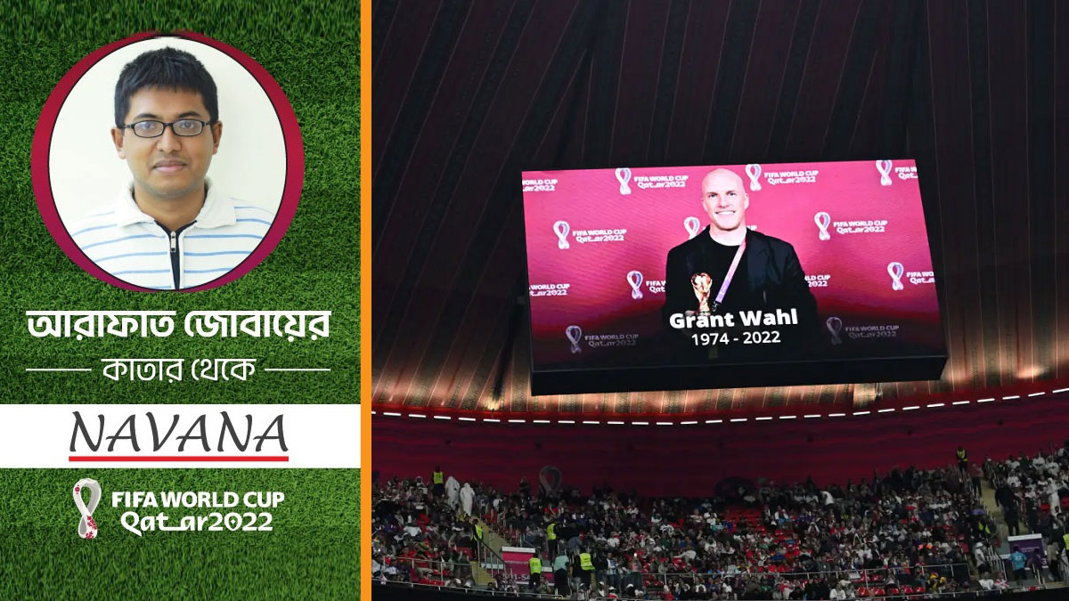 ইংল্যান্ড-ফ্রান্সের ম্যাচটা তখনো শুরু হয়নি। তখনই হঠাৎ আল বায়াত স্টেডিয়ামে নেমে এলো নিরব-নিস্তব্ধতা। আমেরিকার সাংবাদিক গ্রান্ট ওয়াহলের ছবি ডিসপ্লেতে। সংবাদের খোঁজে স্টেডিয়াম থেকে স্টেডিয়ামে, এই ভেন্যু থেকে ওই ভেন্যুতে ঘুরে বেড়াতেন যিনি, সেই গ্র্যান্ট যে এখন স্রেফ ছবি!