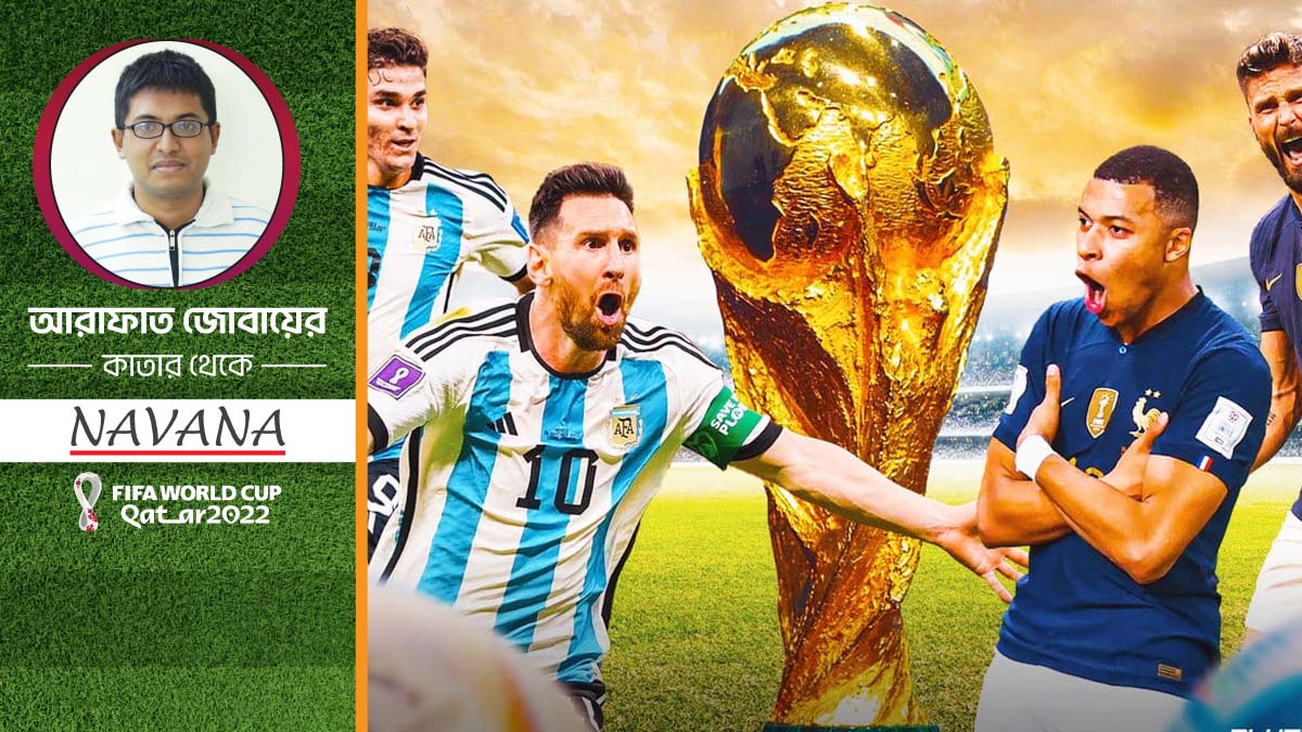 গোটা বিশ্ব জুড়েই প্রত্যাশা মেসির হাতেই যেন ওঠে কাতার বিশ্বকাপের ট্রফি। বিশ্বজুড়ে সমর্থন থাকলেও ফুটবলীয় শক্তিতে ফ্রান্স খানিকটা এগিয়ে অনেক বিশ্লেষকের দৃষ্টিতে। করিম বেনজামা, পগবা, কান্তেরা নেই ইনজুরির জন্য। তিন গুরুত্বপূর্ণ তারকা না থাকলেও পুরো টুর্নামেন্ট জুড়ে ফ্রান্স দারুণ ফুটবল খেলেছে। বিশেষ করে তাদের বাজির ঘোড়া কিলিয়ান এমবাপ্পে। দুই বিশ্বকাপ খেলেই তার গোল সংখ্যা ৯। বয়স মাত্র ২৩। ফিটনেস ও এই ফর্ম থাকলে ফুটবল বিশ্বের অনেক রেকর্ডই হবে এই ফরাসি বালকের।