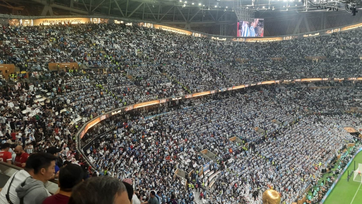 লুসাইল স্টেডিয়ামের গ্যালারির যেদিকে চোখ যায় সেখানেই আর্জেন্টিনার জার্সি না হয় পতাকা। লুসাইল স্টেডিয়াম যেন আর্জেন্টিনার বুয়েন্স আয়ার্স। খেলা শুরুর সঙ্গে সঙ্গে আর্জেন্টিনার সমর্থকদের গান। পুরো স্টেডিয়াম তাদের দখলে।