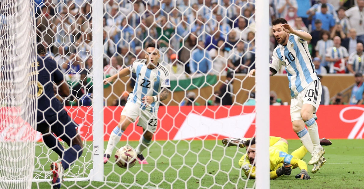 দুরন্ত আক্রমণে মেসি পেয়ে যান গোল। লাউতারো মার্তিনেসের শট ফিরিয়ে দিলেও শেষ রক্ষা হয়নি। ফিরতি বল মেসির হাঁটুতে লেগে গোলের সীমানায় ঢুকে যায়। বিশ্বকাপের ফাইনালে জোড়া গোল মেসির। যদিও ফ্রান্স অফসাইডের আবেদন করেছিল। কিন্তু ভার-এ দেখা গেল, ফ্রান্সের ডিফেন্ডার কিছুটা ভেতরে ঢুকে ছিলেন। আর আরেক ফুটবলার গোলপোস্টের ভেতর থেকে বল ফিরিয়ে দেন।