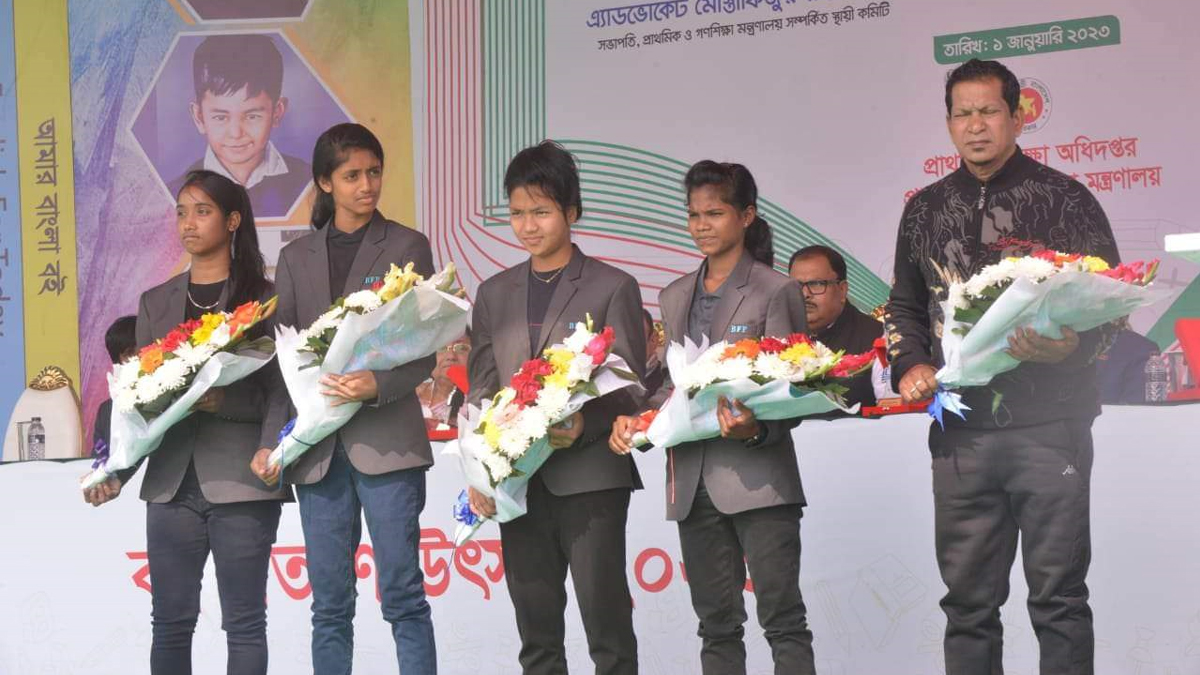 বছরের প্রথম দিন রোববার (১ জানুয়ারি) ঢাকা বিশ্ববিদ্যালয় কেন্দ্রীয় খেলার মাঠে প্রাথমিক শিক্ষা অধিদপ্তর আয়োজিত কেন্দ্রীয় ‘বই বিতরণ উৎসব-২০২৩’ অনুষ্ঠানে তাদের এ সংবর্ধনা দেওয়া হয়।