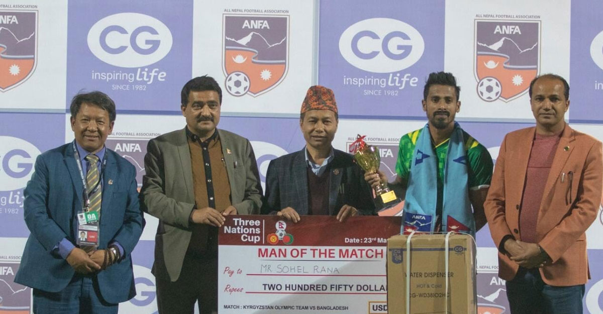 মিডফিল্ডার সোহেল রানার বৃহস্পতি এখন তুঙ্গে। সম্প্রতি বিয়ে করেছেন। আজ ছিলেন অধিনায়ক। তার অধিনায়কত্বে শুরু করা ম্যাচটি বাংলাদেশ জিতেছে ১-০ গোলে। সোহেলের অধিনায়কত্বের সময়ে বাংলাদেশ গোলটি এসেছে। ৫৫ মিনিটে কোচ তাকে উঠিয়ে নিলেও ম্যাচের বিচারকরা সোহেলকে সেরার স্বীকৃতি দিয়েছে। ম্যাচ সেরার পুরস্কার হিসেবে ২৫০ মার্কিন ডলার উপহার পেয়েছেন এই মিডফিল্ডার।