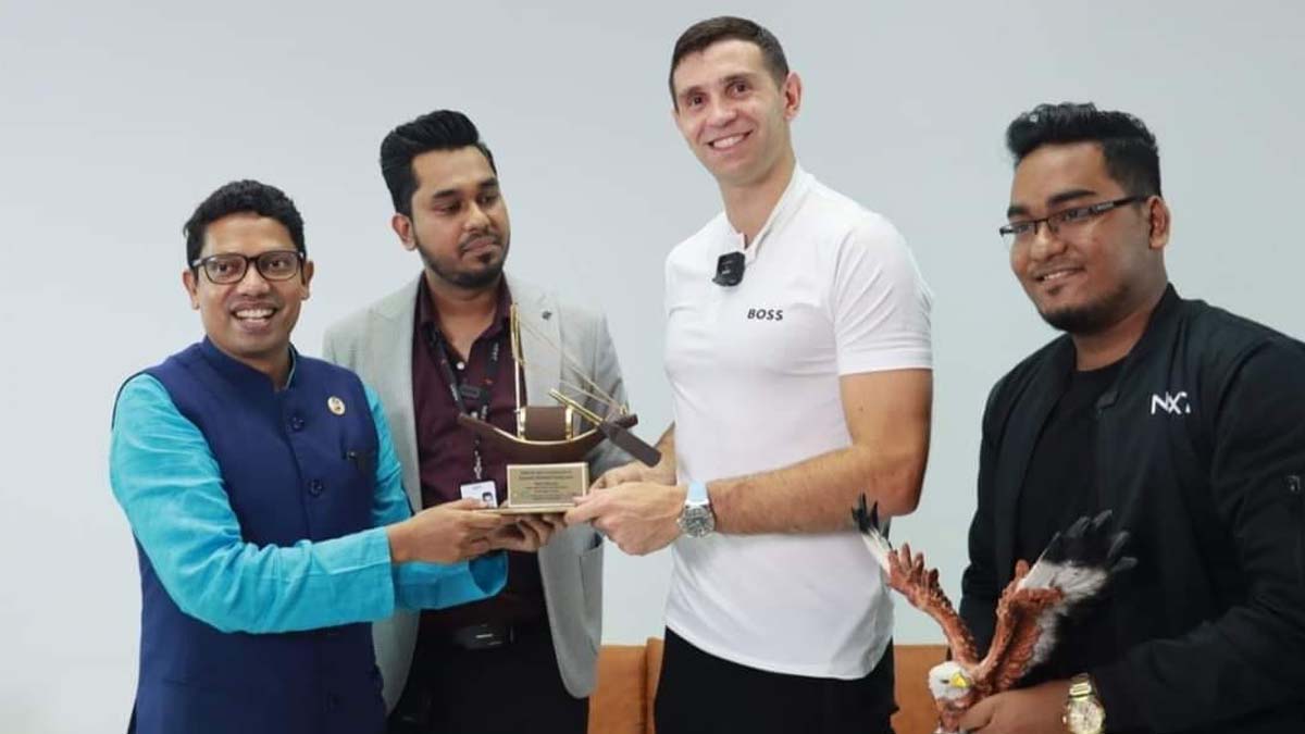 আর্জেন্টিনার জাতীয় দলের গোলরক্ষক ও নির্ভরতার প্রতীক এমিলিয়েনো মার্টিনেজ। ১১ ঘন্টার সংক্ষিপ্ত সফরে তিনি বাংলাদেশে এসেছেন। সেই সফরে তার সঙ্গে সৌজন্য সাক্ষাৎ করেছেন আইসিটি প্রতিমন্ত্রী জুনায়েদ হোসেন পলক।