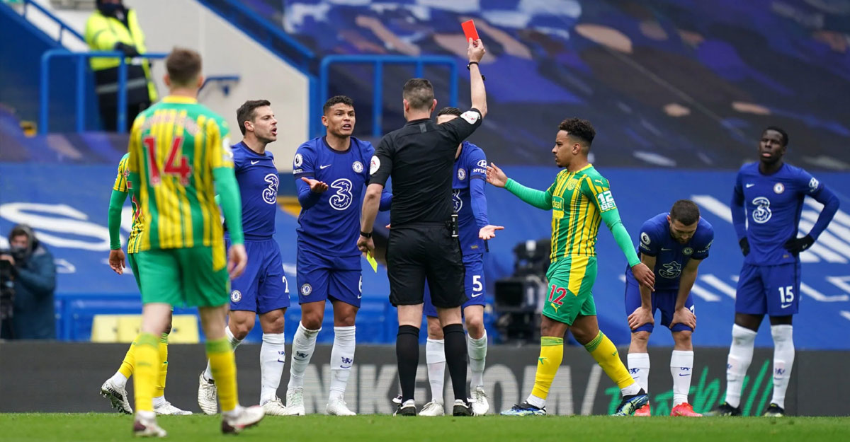 শনিবার ম্যাচের প্রথমার্ধেই অবশ্য দশজনের দলে পরিণত হয় চেলসি। লাল কার্ড দেখে মাঠ ছাড়েন দলটির অভিজ্ঞ ডিফেন্ডার থিয়াগো সিলভা। শুরু থেকেই ম্যাচের নিয়ন্ত্রণ নেওয়া চেলসি এগিয়ে যায় ২৭ মিনিটে।
