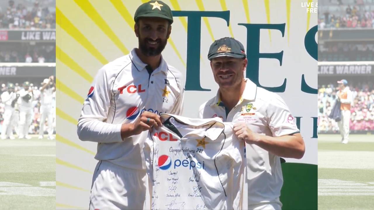 জার্সি তুলে দিতে গিয়ে ওয়ার্নারকে ধন্যবাদও জানান শান মাসুদ। শুভেচ্ছা জানিয়ে বলেন, ‘ধন্যবাদ তোমাকে। আমরা ভাবছিলাম পুরো দল তোমাকে বাবর আজমের জার্সি দেবো, এটা সৌজন্যতার স্মারক হিসেবে। তোমার জন্য শুভকামনা রইলো।’