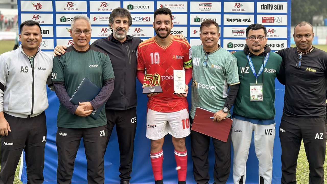 বসুন্ধরা কিংসের অধিনায়ক রবসন রবিনহো দুর্দান্ত এক গোল করেছেন আজ (শুক্রবার)। কিংসের হয়ে এই গোল রবসনের লিগে ৫০তম। তাই ম্যাচের পর কিংসের পক্ষ থেকে রবসনকে সম্মাননাও দেয়া হয়েছে।