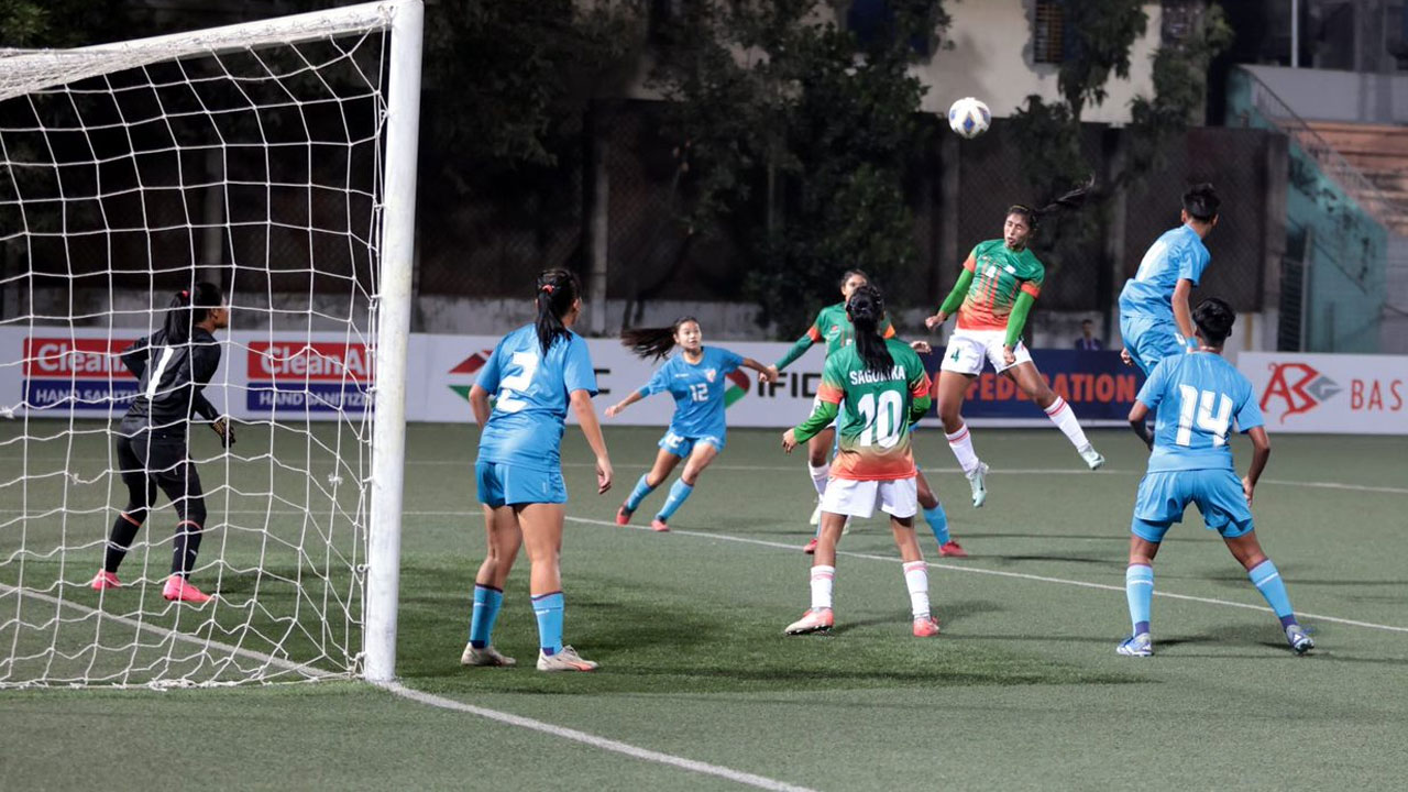 এর আগে ম্যাচের শুরুতেই লিড নেয় ভারত৷ ৮ মিনিটে রক্ষণ দুর্বলতা ও গোলরক্ষকের ভুলে বাংলাদেশ পিছিয়ে পড়ে। ভারতীয় মিডফিল্ডার নিতু লিন্ডার থ্রুতে বাংলাদেশের দুই ডিফেন্ডারকে পেছনে ফেলে বল পান শিবানী দেবী৷ বাংলাদেশের গোলরক্ষক স্বর্ণা রানী বক্সের সামনে এসে বলের নাগাল পাননি৷ শিবানী বুদ্ধিদীপ্তভাবে প্লেসিংয়ে বল জালে পাঠান।