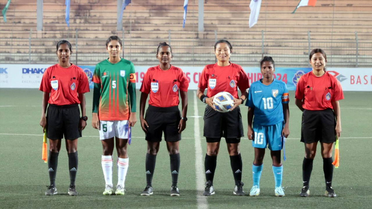 এর আগে ম্যাচের শুরুতেই লিড নেয় ভারত৷ ৮ মিনিটে রক্ষণ দুর্বলতা ও গোলরক্ষকের ভুলে বাংলাদেশ পিছিয়ে পড়ে। ভারতীয় মিডফিল্ডার নিতু লিন্ডার থ্রুতে বাংলাদেশের দুই ডিফেন্ডারকে পেছনে ফেলে বল পান শিবানী দেবী৷ বাংলাদেশের গোলরক্ষক স্বর্ণা রানী বক্সের সামনে এসে বলের নাগাল পাননি৷ শিবানী বুদ্ধিদীপ্তভাবে প্লেসিংয়ে বল জালে পাঠান।