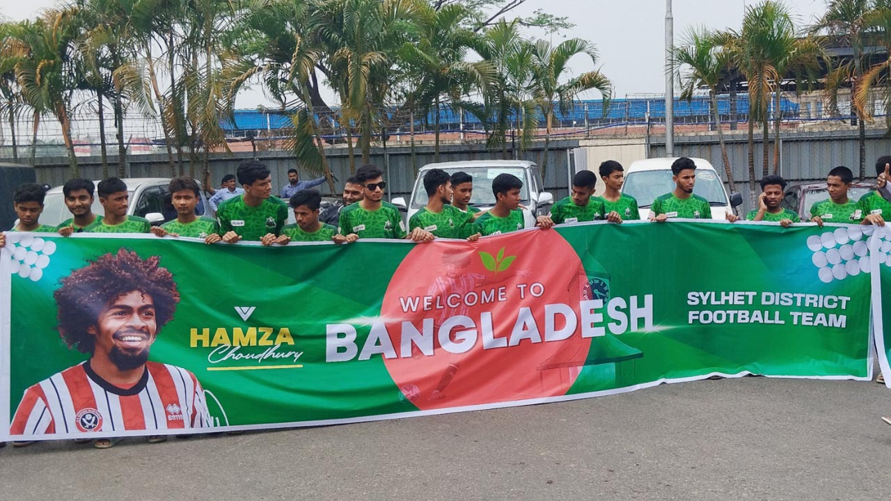 ইংল্যান্ডের ম্যানচেস্টার থেকে বাংলাদেশের উদ্দেশে রওনা হয়েছেন হামজা চৌধুরী। ইংলিশ চ্যাম্পিয়নশিপ লিগে খেলা এই তারকাকে অভ্যর্থনা জানাতে সিলেট ওসমানী আন্তর্জাতিক বিমানবন্দরে হাজির হয়েছেন তার ভক্ত সমর্থকরা।