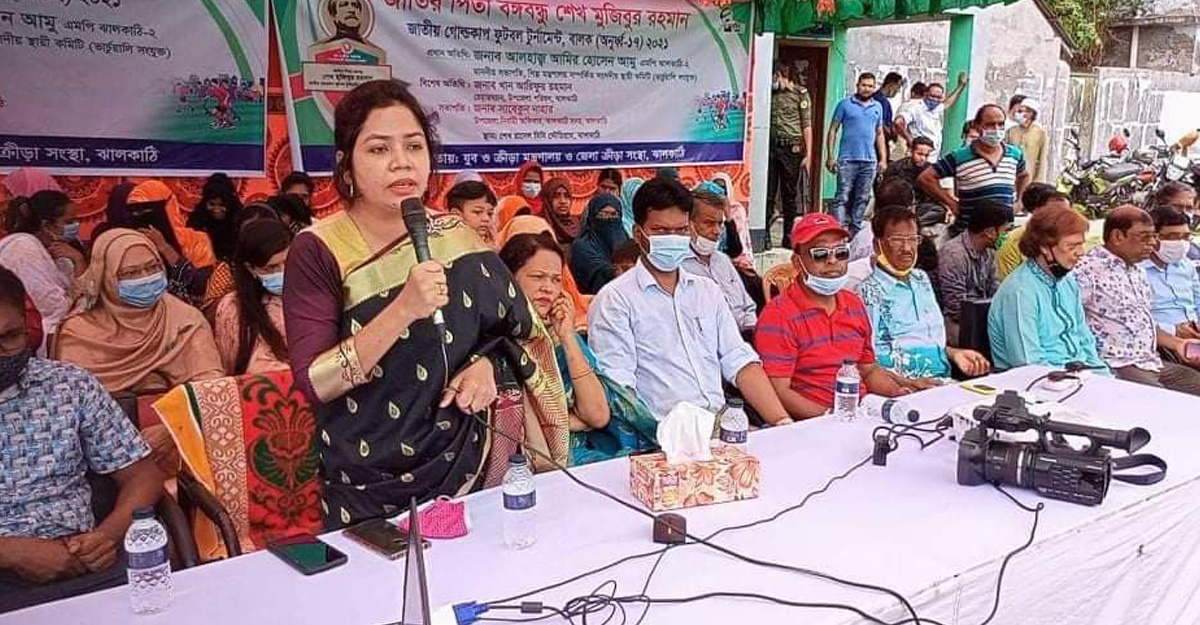 ঝালকাঠিতে শুরু হলো জাতির পিতা বঙ্গবন্ধু শেখ মুজিবুর রহমান ও বঙ্গমাতা শেখ ফজিলাতুন্নেসা মুজিব জাতীয় গোল্ডকাপ ফুটবল টুর্নামেন্ট। বুধবার প্রধান অতিথি হিসেবে ঢাকা থেকে ভার্চুয়ালি সংযুক্ত হয়ে খেলার উদ্বোধন করেন ১৪ দলের মুখপাত্র ও শিল্প মন্ত্রণালয় সম্পর্কিত স্থায়ী কমিটির সভাপতি আমির হোসেন আমু এমপি।