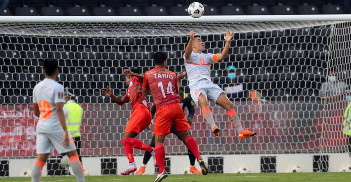 ৭৮ মিনিট পর্যন্ত আটকে রেখেছিল বাংলাদেশ। ৭৯ মিনিটে ডান প্রান্ত থেকে ক্রসে অধিনায়ক ছেত্রী বক্সের মধ্যে হেড করে গোল করেন। দুই ডিফেন্ডার থাকলেও তারা মার্ক করতে পারেননি ভারতীয় অধিনায়ককে।