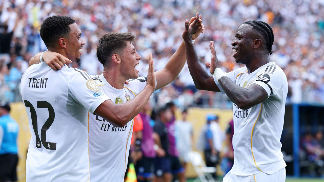সঙ্গে জ্যুড বেলিংহাম, আর্দা গুলের এবং ফেদেরিক ভালভার্দের তিন গোল নিশ্চিত করেছে রিয়ালদের দারুণ এক জয়। নর্থ ক্যারোলাইনার শার্লটে রোববার ‘এইচ’ গ্রুপের ম্যাচটি ৩-১ গোলে জিতেছে রিয়াল মাদ্রিদ। পাচুকার একমাত্র গোলটি করেন এলিয়াস মন্তিয়েল।