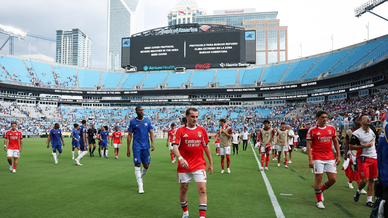 এর আগে ৮৫ মিনিট পর্যন্ত ম্যাচটি ঠিকঠাকই চলছিল। এরপরই নামে বজ্রবৃষ্টি। ওই সময় পর্যন্ত ১-০ গোলে এগিয়ে ছিল ইংলিশ প্রিমিয়ার লিগের ক্লাব চেলসি। ৬৪তম মিনিটে তাদের লিড এনে দেন রিস জেমস। দারুণ ফ্রি কিকে তিনি গোলটি করেন। প্রায় দুই ঘণ্টার বিরতির পর ৮৬ মিনিট থেকে খেলা শুরু হওয়ার পর দৃশ্যপট পাল্টে যায়। ৯০ মিনিটের যোগ করা সময়ের দ্বিতীয় মিনিটে লাল কার্ড দেখে মাঠ ছাড়েন বেনফিকার আর্জেন্টাইন উইঙ্গার জানলুকা প্রেস্তিয়ানি।