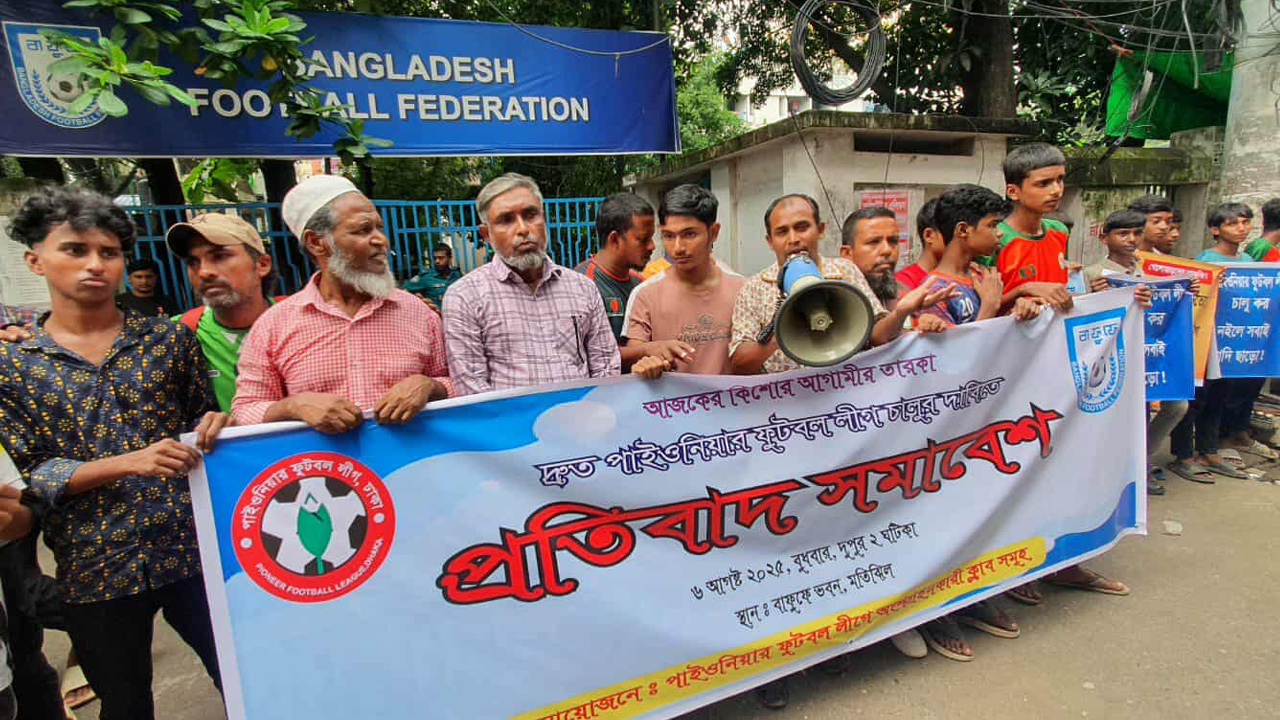 লিগ ও কাউন্সিলশিপের দাবিতে পাইওনিয়ার ক্লাবগুলোর প্রতিবাদ সমাবেশ