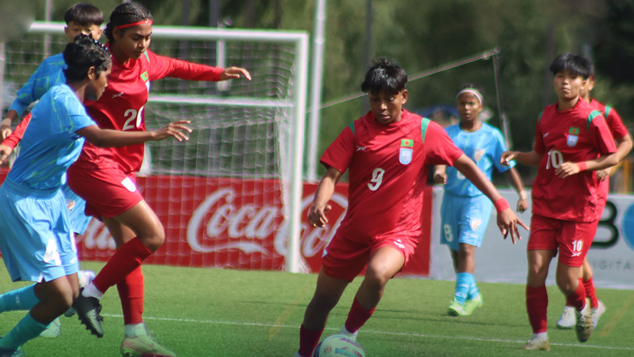 চাংলিমিথাং স্টেডিয়ামে আজ অ-১৭ সাফের দ্বিতীয় রাউন্ডের ম্যাচে মুখোমুখি হয় বাংলাদেশ ও ভারতীয় মেয়েরা। যেখানে ১৪ মিনিটেই ভারতকে এগিয়ে দেয় পার্ল ফার্নান্দেস। এরপর বাংলাদেশ সমতায় ফেরার এবং ভারত লিড বাড়ানোর উল্লেখযোগ্য সুযোগ তৈরি করলেও ফিনিশিংয়ে ব্যর্থ হচ্ছিল। ৭৬ মিনিটে বাংলাদেশ দ্বিতীয় গোল হজম করে। এরপর আর ঘুরে দাঁড়াতে পারেনি অর্পিতা বিশ্বাসের দল।