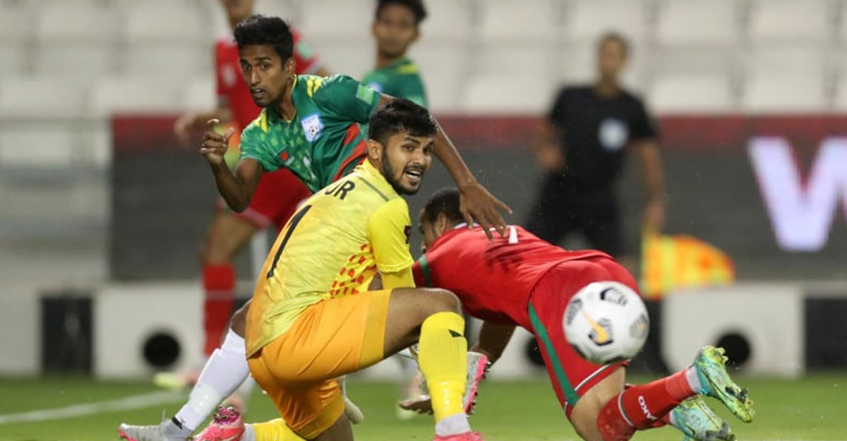 বাংলাদেশের বিশ্বকাপ বাছাইয়ের সমাপ্তি খুব সুখকর হলো না। শক্তিশালী ওমানের বিরুদ্ধে বাংলাদেশ হারবে অনুমেয় ছিল। এরপরও কোচ ও অধিনায়ক তপু বর্মণ ১ পয়েন্টের আশা দেখিয়েছেন। কিন্তু কাতারের জসিম বিন হামিদ স্টেডিয়ামে বাংলাদেশকে খুঁজেই পাওয়া যায়নি। ওমান বাংলাদেশকে ৩-০ গোলে হারিয়ে বিশ্বকাপ বাছাইয়ের পরবর্তী রাউন্ডে খেলার সম্ভাবনা জিইয়ে রাখল।