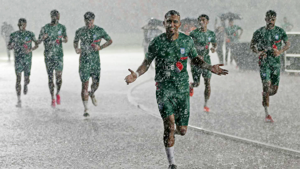 বিকেল ৪টার পর আকস্মিক বৃষ্টিতে বাংলাদেশ দলের স্টেডিয়ামে পৌঁছাতেও আধঘণ্টা দেরি হয়েছিল। এরপর জামাল-ফাহমিদুলরা মাঠে নামলেও বজ্রপাত ও তুমুল বৃষ্টিতে কিছুক্ষণ পর ড্রেসিংরুমে ফিরতে হয়েছে। বৃষ্টির সঙ্গে একটা সখ্যতা রয়েছে ফুটবলের। বিশেষ করে বাংলাদেশে তুমুল বৃষ্টিতে ফুটবল খেলা মজার হলেও বজ্রপাতের মধ্যে জাতীয় দলের অনুশীলন ঝুঁকিপূর্ণ। এজন্য বাংলাদেশ দলের স্প্যানিশ কোচ হ্যাভিয়ের ক্যাবরেরা বজ্রপাতের শুরুর দিকেই অনুশীলন থামিয়েছেন।