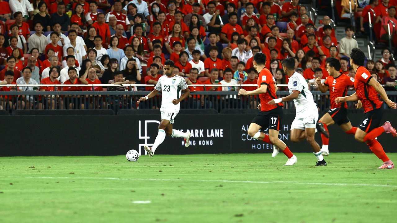 এর আগে হংকংয়ের ৫০ হাজার দর্শকের সামনে ভালোই শুরু করেছিল হামজারা। স্বাগতিকদের আক্রমণ সামাল দিয়ে যাচ্ছিলেন বাংলাদেশের ডিফেন্ডাররা। নির্ভরযোগ্য ডিফেন্ডার তারিক কাজী হংকং ফরোয়ার্ড ফার্নান্দোকে পেছন থেকে ফাউল করে বসেন। জাপানিজ রেফারি পেনাল্টির বাঁশির সঙ্গে হলুদ কার্ড দেখান। পেনাল্টি থেকে ম্যাথিউ গোল করতে ভুল করেননি।