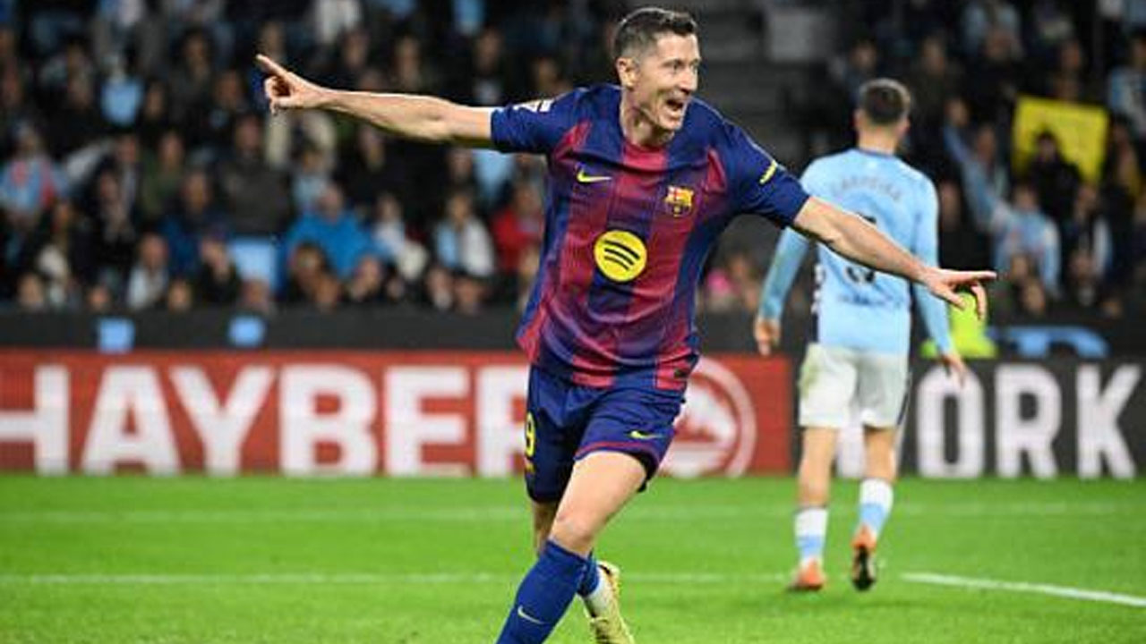 ফিটনেসে ফেরার প্রমাণ হ্যাটট্রিক করে দিলেন রবার্ট লেভানডোভস্কি। গতকাল সেল্টা ভিগোর মাঠে ম্যাচটি বার্সেলোনা জিতেছে ৪-২ গোলে। এই জয়ে লা লিগার শীর্ষ দল রিয়াল মাদ্রিদের সঙ্গে ব্যবধান ঘুচাল তারা।