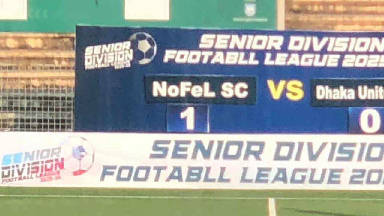 কমলাপুর স্টেডিয়ামে শুরু হওয়া প্রথম বিভাগ লিগের উদ্বোধনী দিনে নোফেল স্পোর্টিং ক্লাব ১-২ গোলে ঢাকা ইউনাইটেডের কাছে হেরেছে। প্রথম বিভাগ ফুটবলে এবার ১৮ দল অংশগ্রহণ করছে। ফুটবলের তুমুল উন্মাদনার মধ্যেও আনুষ্ঠানিক স্পন্সর ছাড়াই শুরু হয়েছে লিগ।