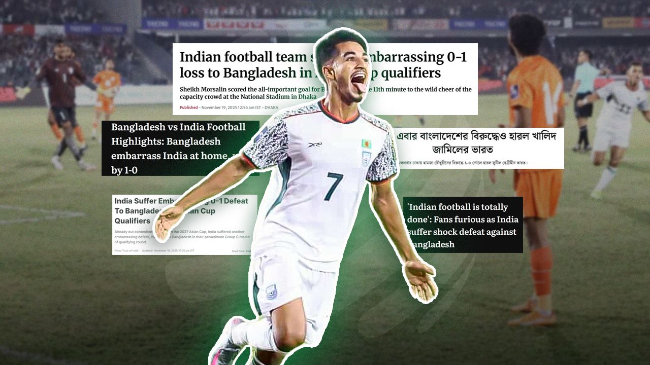 ২২ বছর পর ভারতের বিপক্ষে জয় পেয়েছে বাংলাদেশ ফুটবল দল। গতকাল ঢাকা জাতীয় স্টেডিয়ামে মোরসালিনের একমাত্র গোলে তারা ১-০ ব্যবধানে জয় তুলে নেয়। স্বাভাবিকভাবেই এমন সাফল্যে স্বাগতিক ফুটবলার থেকে সমর্থকদের উচ্ছ্বাস যেন বাঁধ মানছিল না। অন্যদিকে, রাজ্যের হতাশা ছিল ভারতীয় ডাগআউটে। অনেকটা মাথা নিচু করেই মাঠ ছাড়ে খালিদ জামিলের শিষ্যরা। দেশটির গণমাধ্যমেও এমন হারকে ‘লজ্জার’ হিসেবে আখ্যা দেওয়া হয়েছে।
