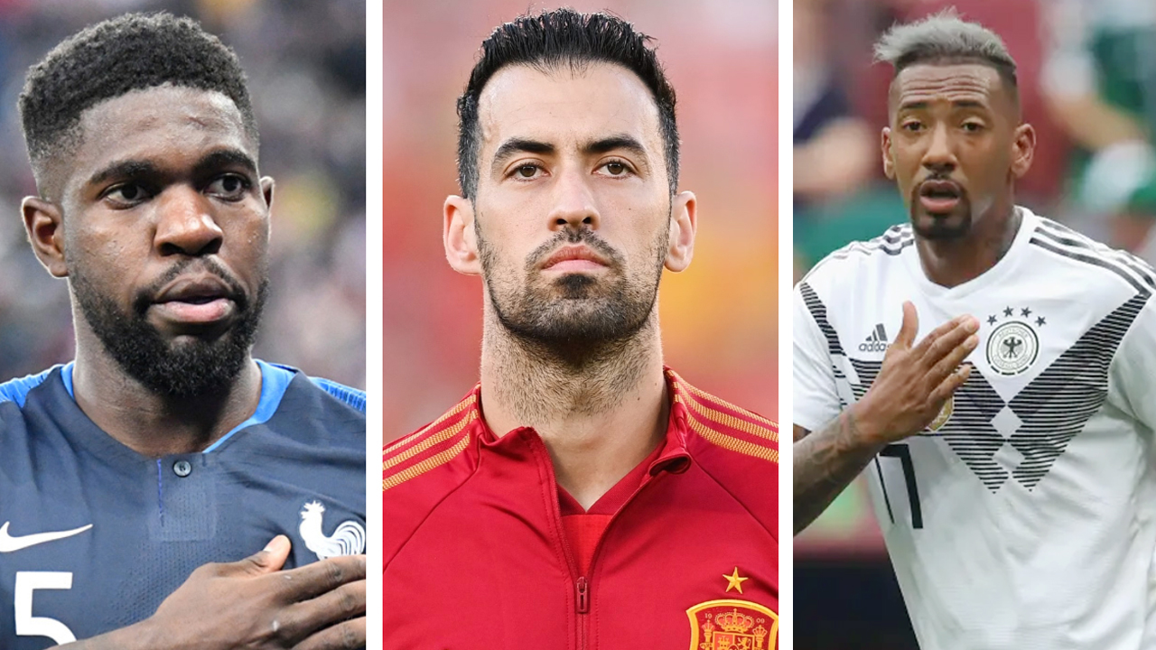 বাম থেকে স্যামুয়েল উমতিতি-সার্জেও বুসকেটস ও জেরোমি বোয়াটেং।