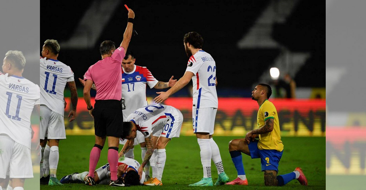 বাংলাদেশ সময় শনিবার সকালে চিলির বিপক্ষে ম্যাচে জঘন্য ঘটনার জন্ম দিয়ে লালকার্ড দেখেছেন তিনি। ম্যাচের তখন ৪৮ মিনিট। ব্রাজিল লুকাস পাকেতার গোলে তখন এগিয়ে। অনেকটাই নির্ভার দলটির সমর্থকরা। ঠিক তখনই কিনা ন্যাক্কারজনক এক ঘটনার জন্ম দিলেন গ্যাব্রিয়েল জেসুস। বল দখলে নিতে উড়ে গিয়ে চিলিয়ান লেফটব্যাক ইউজেনিও মেনার মুখেই লাথি মেরে বসেন জেসুস। বেপোরোয়া এক লাথি! দেখে মনে হচ্ছিল যেন তিনি ফ্লাইং কিক মারলেন প্রতিপক্ষের ফুটবলারকে!