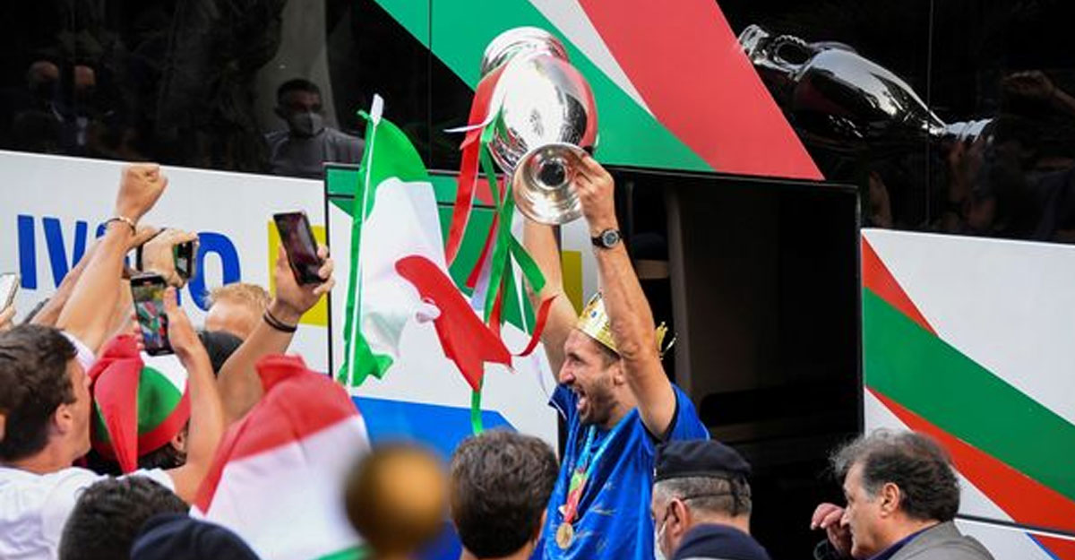সোমবার ট্রফি সত্যি সত্যিই পৌঁছেছে রোমে। রবার্তো মানচিনির দল ফিরেছে নিজেদের দেশে। অবশ্যই ইউরোর ট্রফিটাকে সঙ্গী করে। তাতে পুরো রোম পরিণত হয়েছিল উৎসবের নগরীতে। রাস্তায় ছিল মানুষের ভিড়। আগে থেকেই কিয়েলিনিদের অপেক্ষায় ছিলেন সবাই।