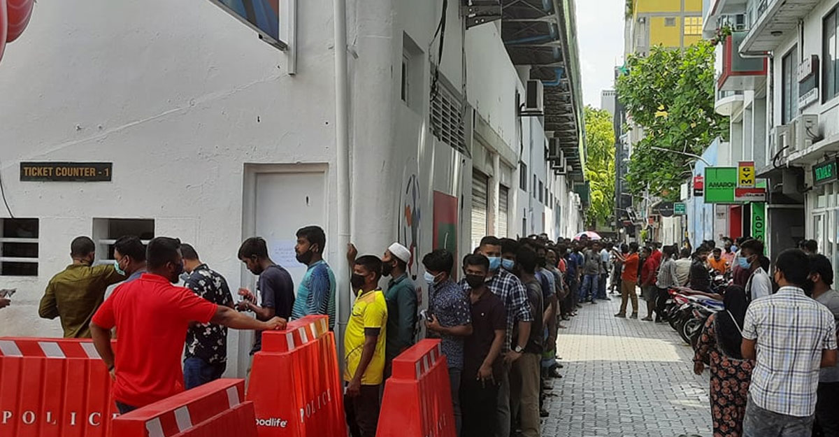 মালে স্টেডিয়ামের চার দিকে বাংলাদেশিদের ভিড়। সবাই অপেক্ষায় বাংলাদেশ নেপাল ম্যাচের টিকিটের। কেউ পেয়ে তৃপ্তির হাসি দিচ্ছেন আবার কেউ অপেক্ষায়। অনেকে আবার উৎকণ্ঠায় শেষ পর্যন্ত টিকিট মিলবে তো।