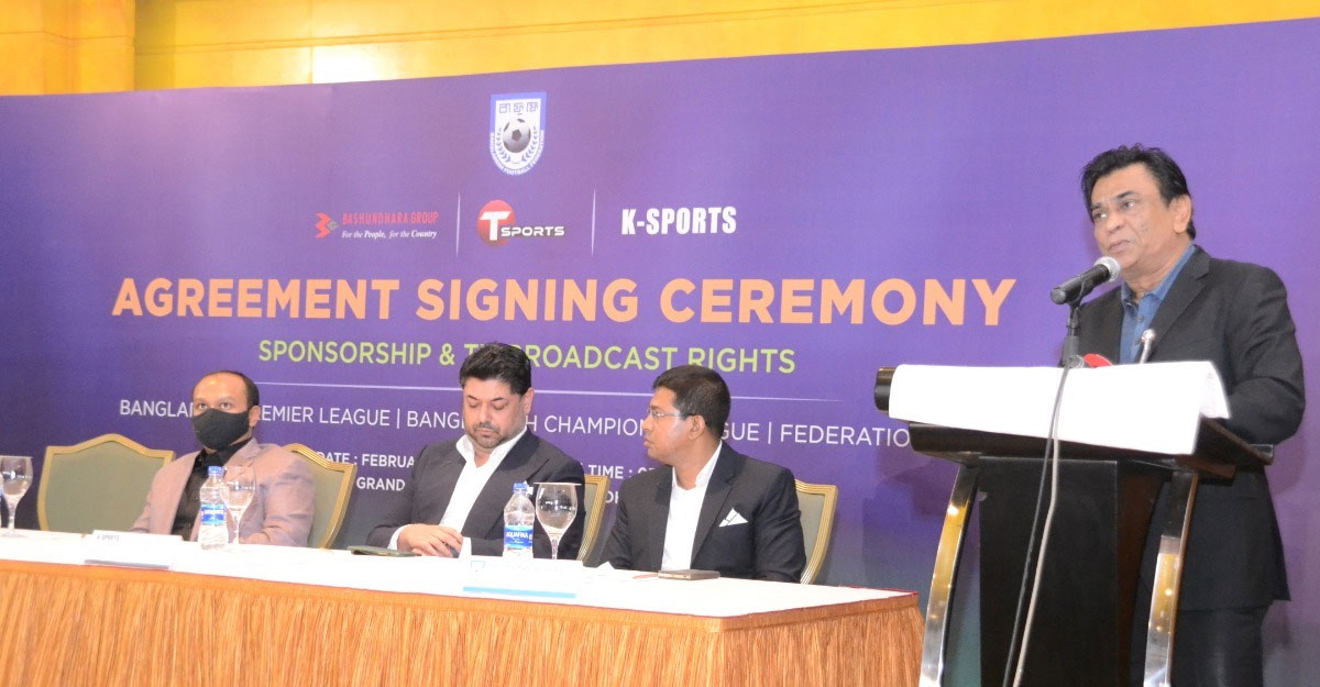 বাফুফের পক্ষে চুক্তি স্বাক্ষর করেন সিনিয়র সহ-সভাপতি আবদুস সালাম মুর্শেদি, কে স্পোর্টসের পক্ষে সিইও ফাহাদ করিম ও টি স্পোর্টসের পক্ষে ইশতিয়াক সাদেক।