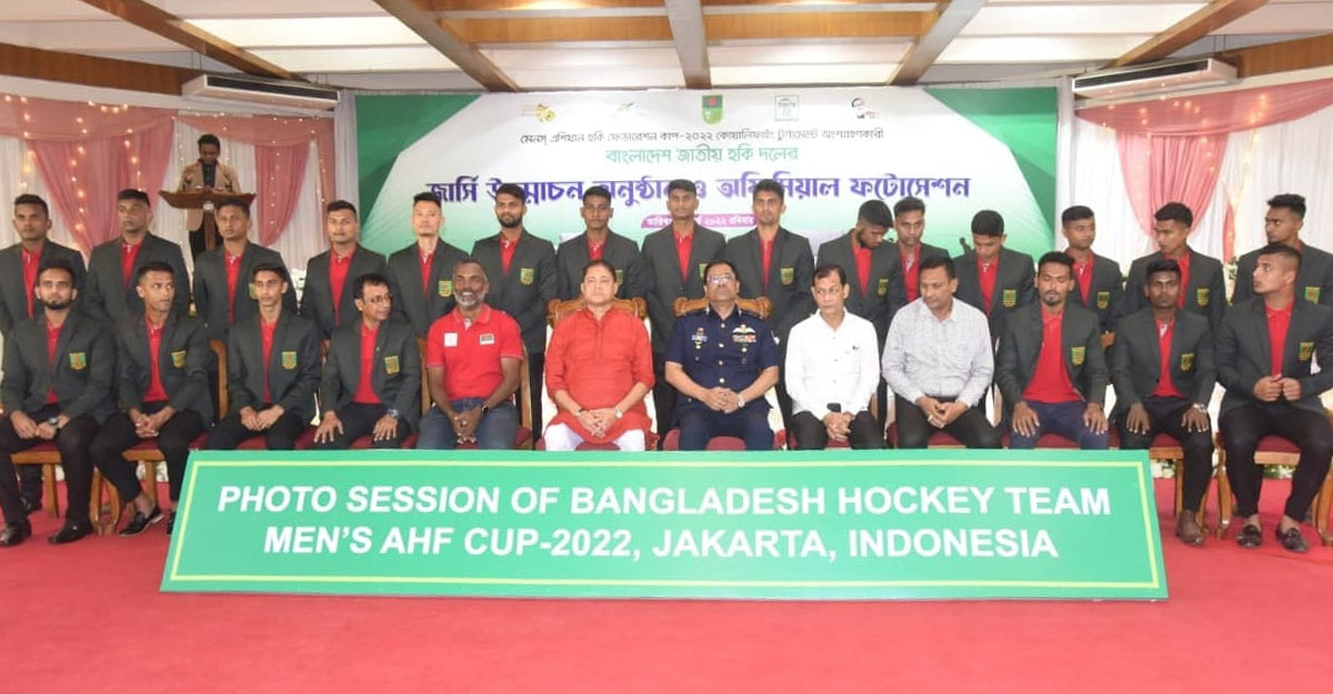 এশিয়ান হকি ফেডারেশন (এএইচএফ) কাপে খেলতে আগামীকাল (সোমবার) ইন্দোনেশিয়ার জাকার্তা যাচ্ছে জাতীয় হকি দল। এর আগে রোববার ফ্যালকন হলে জাতীয় দলের জার্সি উন্মোচন ও অফিসিয়াল ফটোসেশন অনুষ্ঠিত হয়। এ সময় বিমান বাহিনী প্রধান ও ফেডারেশনের সভাপতি এয়ার চীফ মার্শাল শেখ আবদুল হান্নান ও ফেডারেশনের ভারপ্রাপ্ত সাধারণ সম্পাদক মোহাম্মদ ইউসুফ উপস্থিত ছিলেন।