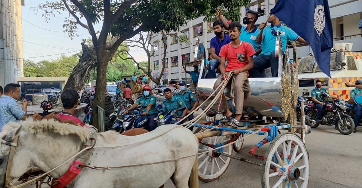 আজ (বৃহস্পতিবার) ঢাকা প্রিমিয়ার হকি লিগের দলবদলের শেষ দিন ছিল। শেষ দিনে দলবদলে চমক দেখিয়েছে বাংলাদেশ পুলিশ। ঘোড়ার গাড়ি, মটরসাইকেল বহর, ঢাকঢোল বাজিয়েই মওলানা ভাসানী স্টেডিয়ামে আসে তারা। তবে তাদের সমর্থক বলতে পুলিশ বাহিনীর শখানেক সদস্য ছিলেন।